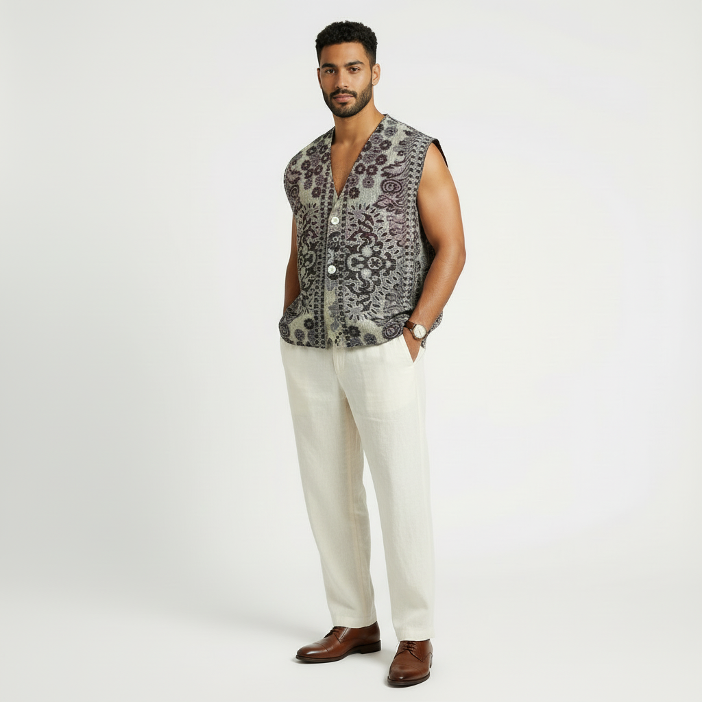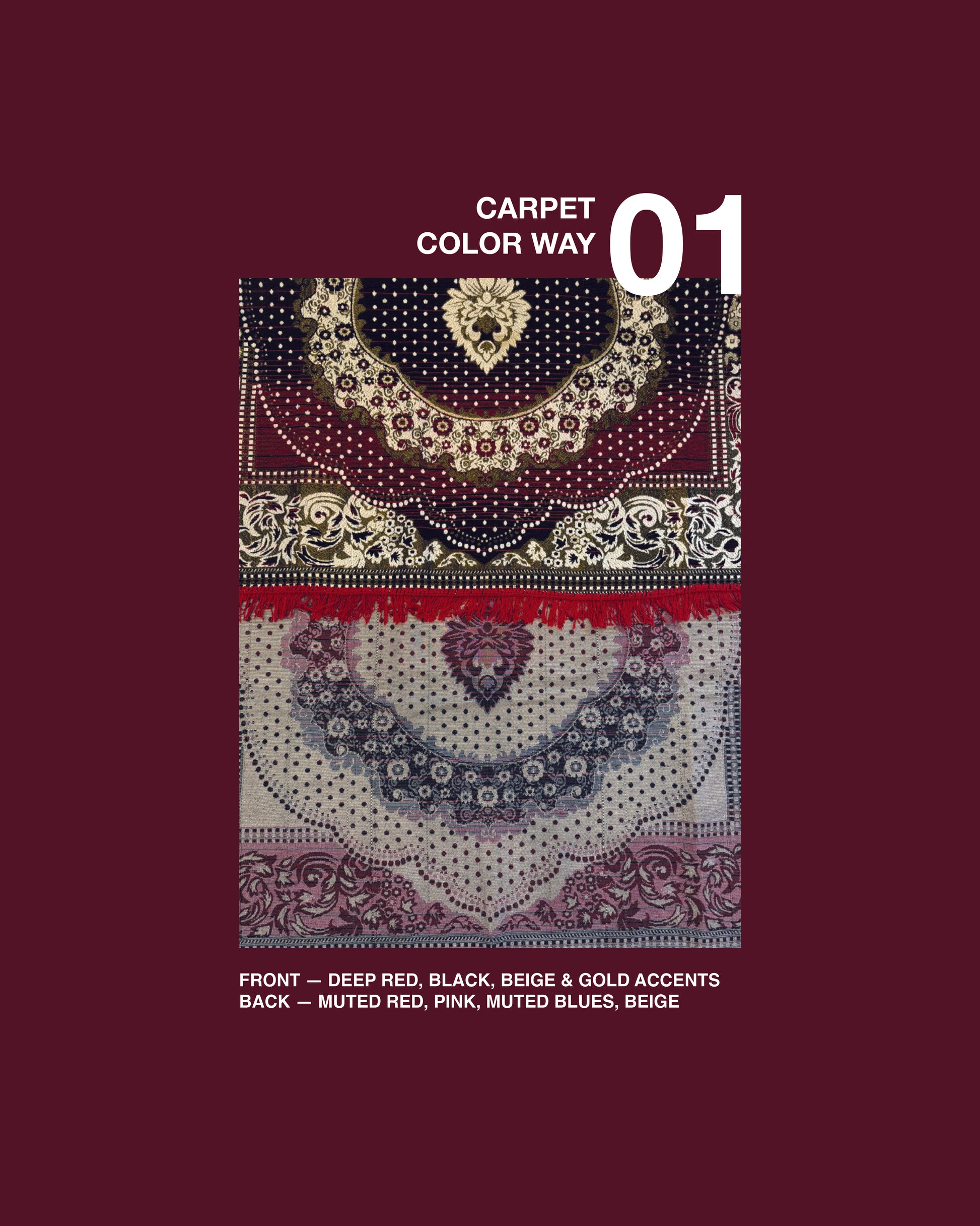 PLEASE NOTE:The images shown are Al-generated using the exact carpets, colours, and silhouettes of this collection. The garments in this collection are designed and crafted by our founder Sindhu Sridhar. AI-generated images are used only to visualise how the final piece may look when worn and used solely as a visual tool in place of a photoshoot. No part of the design or production is automated. While they closely reflect the final design, slight variations in texture, pattern placement, or detailing may occur due to the handcrafted nature of reclaimed materials.